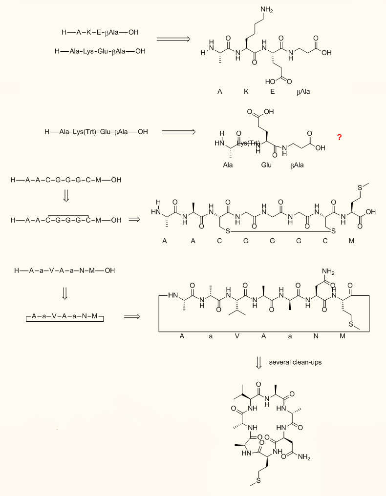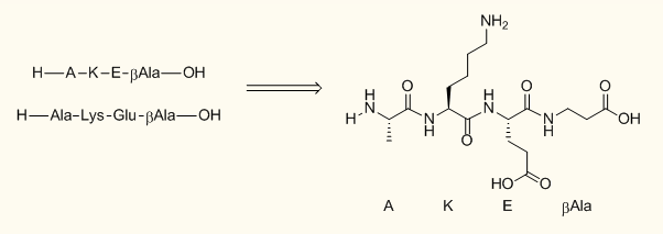 Ezzel a hasznos funkcióval peptid vagy nukleinsav szekvenciákat lehet gyorsan felépíteni az Accelrys Draw-ban, ChemBioDraw-ban vagy ChemDoodle-ban (ez utóbbiban sztereokémia nélkül). A ChemSketch-ben egy eléggé kezdetleges verzió található. A ChemBioDraw 13-14 verzió a legfejlettebb, ez támogatja a β- és D-aminosavakat is, a diszulfid hidakat, ciklopeptideket és a peptidláncok közötti kapcsolatok kialakítását. Védőcsoportokat is lehet bevinni, ez azonban nem működik tökéletesen, a rövidítéseket nem lehet szerkezetté kiterjeszteni, még a manuálban leírt példa sem volt reprodukálható.