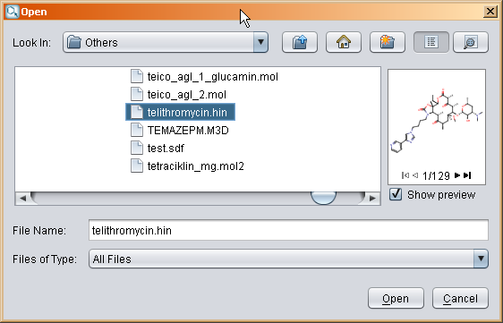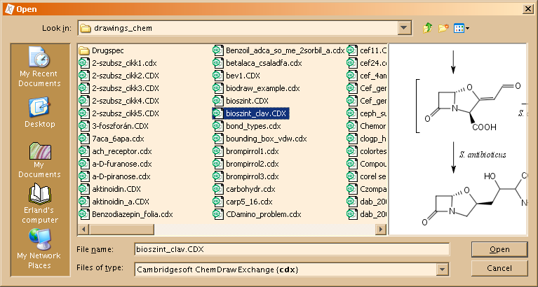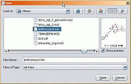 A MarvinSketch, ChemDoodle és DrawIt a fájlmegnyitási ablakban tartalmaz egy egyszerű, de nagyon hasznos gyorsnézőt. Ez igen nagy segítség egy adott fájl megtalálásához, amikor egy könytár esetleg 200-300 fájlt tartalmaz. A többi program is beépíthetne hasonlókat.