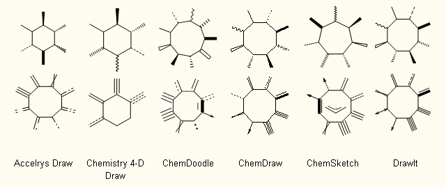 Mindegyik program érzékelni képes az aromaticitást és az alternáló kettőskötéseket opcionálisan körrel helyettesíti. Az Accelrys Draw azonban nem képes az aromás köröket más alkalmazásokba exportálni.