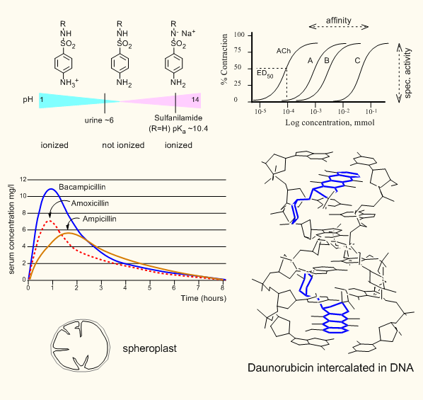 A lenti A ábra rajzai ChemBioDraw-val készültek. A daunorubicin – DNS komplex szerkezete egy Protein Data Bank fájlból lett kiemelve, majd egy 3D modellező programmal pozícionálva, molekulafájlként átvive a ChemBioDraw-ba és itt még apró szerkesztésekett végezve. A B ábra ChemSketch-el készült. A ChemBioDraw 10-12 új és nagyon jól használható eszköze az ún. BioDraw paletta és eszköztár. Nem minden verzió tartalmazza, csak a Chem(Bio)Draw névvel futók (ChemBioOffice). A BioDraw paletta a biokémiai ábrákhoz szükséges interaktív, módosítható templátokat tartalmazza (enzimek, receptorok, membránok, DNS, ioncsatornák, stb.), C ábra. A BioDraw elemei természetesen keverhetők kémiaiakkal is.