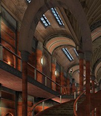 2) A small hall in Myst island, where the library of Atrus was many years ago.