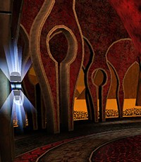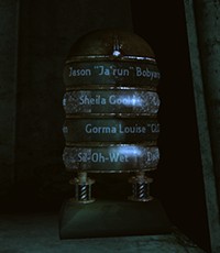 Its walls are adorned with the names of the D'ni kings, the books placed along the wall describe the life of the kings.